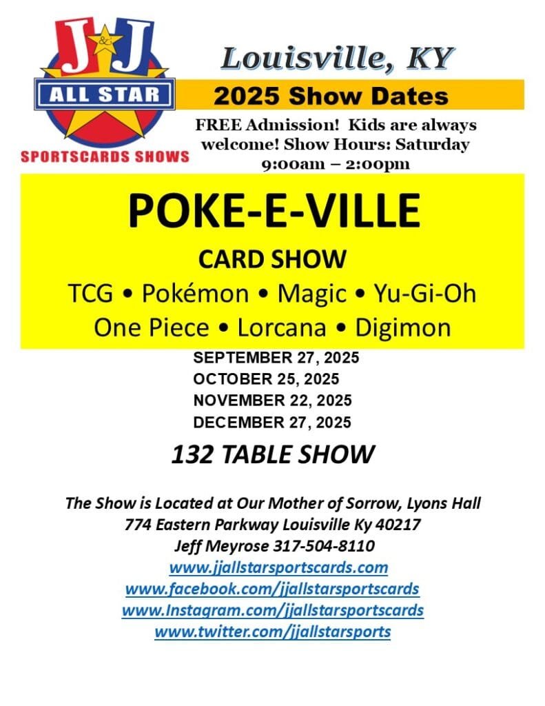 Thank you for supporting local hobby enthusiasts and keeping card shows alive and thriving! Ripheadz shares your passion for the community. Please note that all events listed on Ripheadz.com are provided for informational and entertainment purposes only. Unless otherwise stated, events are hosted, presented, or sponsored by third parties. We strongly recommend verifying event details with the host or promoter before making travel plans, as schedules may change. For questions, concerns, or to submit your show for inclusion, please contact us at patt.mainter@ripheadz.com. - Keywords – Upcoming Sports Card Shows in Indiana, Best Sports Card Shows in Indiana, Sports Card Shows in Indiana, Sports Card Shows Near Me, Indiana Sports Card Shows, Indianapolis Card Shows, Carmel Card Shows, Danville Card Shows, Cincinnati Card Shows, Louisville Card Shows, Chicago Card Shows, Lafayette Card Shows, Evansville Card Shows, Fishers Card Shows, Sports Cards, Top Card Shows in Indiana, Pokemon, Magic the Gathering